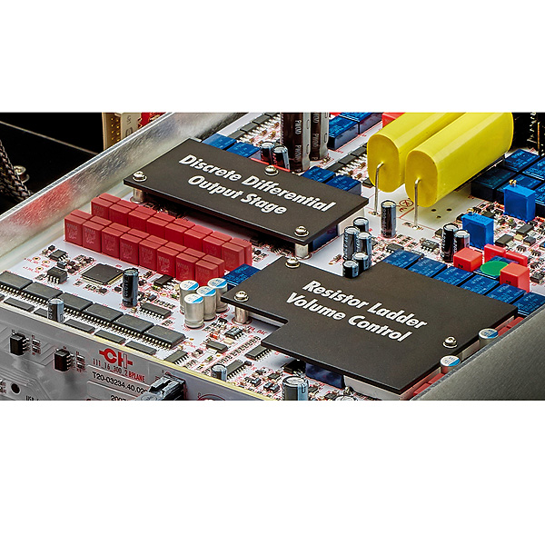 В основе L10 лежит полностью дискретная, полностью балансная аналоговая архитектура CH Precision, теперь дополненная системой регулировки громкости, которая переосмысливает понятие точности. Вместо традиционного ослабления сигнала после усиления, L10 использует лестничную схему R-2R в токовом домене, обеспечивающую точные шаги 0,5 дБ в замечательном динамическом диапазоне 141 дБ. За ней следует выделенный каскад преобразования I/V, сохраняющий целостность сигнала, обеспечивая при этом исключительный контроль и разрешение. Благодаря дальнейшему сокращению сигнальных трактов и тщательной доработке, регулятор громкости становится необходимым не только для чистоты звучания и низкого уровня шума L10, но и для его плавной динамики, тональных нюансов и естественной музыкальной выразительности.
