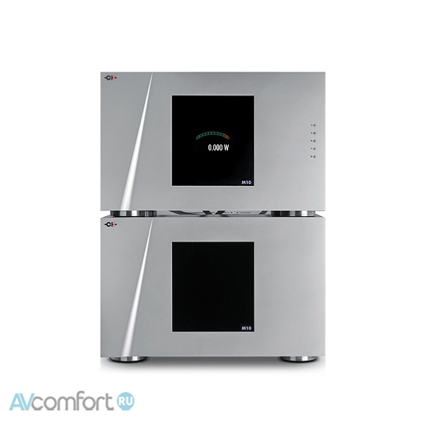 Его двухкорпусная архитектура изолирует каскады усиления от источника питания, минимизируя шум и обеспечивая тепловую стабильность и долговременную работоспособность. Два трансформатора мощностью 1800 ВА, поддерживаемые тщательно структурированным блоком конденсаторов общей емкостью приблизительно один фарад (1 000 000 мкФ), обеспечивают ток с исключительной скоростью, контролем и запасом. Регулируемая глобальная обратная связь — с точностью до 1% — наряду с независимой двухканальной калибровкой позволяет настраивать M10 не только под систему, которую он использует, но и под музыкальные требования, предъявляемые к нему.