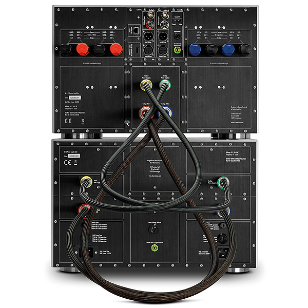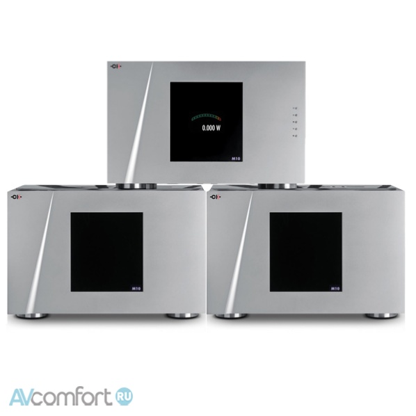 Его двухкорпусная архитектура изолирует каскады усиления от источника питания, минимизируя шум и обеспечивая тепловую стабильность и долговременную работоспособность. Два трансформатора мощностью 1800 ВА, поддерживаемые тщательно структурированным блоком конденсаторов общей емкостью приблизительно один фарад (1 000 000 мкФ), обеспечивают ток с исключительной скоростью, контролем и запасом. Регулируемая глобальная обратная связь — с точностью до 1% — наряду с независимой двухканальной калибровкой позволяет настраивать M10 не только под систему, которую он использует, но и под музыкальные требования, предъявляемые к нему.