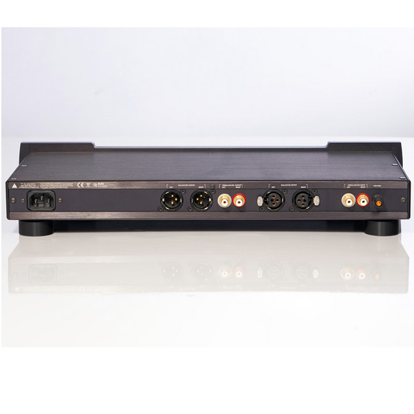 Информация взята с сайта avcomfort.ru Модель оснащена балансным входом и выходом, реализованным с помощью разъемов Neutrik. Также имеются обычные входные и выходные разъемы RCA и контакт для заземления тонарма на фонокорректор. Все аудиоразъемы позолочены.