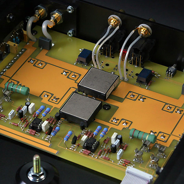 Печатные платы модели S5.5 изготовлены из специального композита, укрепленного стекловолокном. Их дорожки позолочены. Металлические части корпуса «оконечника» анодированы, а все аудиоразъемы имеют позолоту контактных поверхностей.