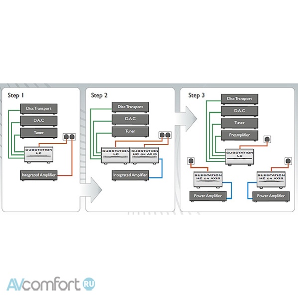 Мы рекомендуем начать с базового устройства SubStation LC, на основе которой можно улучшить электропитание источников сигнала. Затем для электропитания усилителя можно добавить в систему SubStation HC или Axis. Если в вашей системе появятся раздельные усилители мощности (моно), то лучше организовать их электропитание, добавив еще один HC или axis. Таким образом, процесс расширения системы поддерживается добавлением новых устройств очистки сети, апгрейд существующих аппаратов или обмен их на более совершенные не требуется. На рынке устройств сетевой очистки high end в настоящий момент нет моделей, предоставляющих подобную функциональную гибкость и технологическую оснащенность. Мы уверены, что являемся абсолютными лидерами.