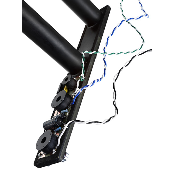 Элегантный алюминиевый подиум Vienna Acoustics Mozart Grand Symphony Editition оснащен стальными шипами. Обе фирменные 6-дюймовые головки собственной разработки оснащены XPP полипропиленовыми диффузорами с инвертированными резиновыми подвесами. Твитер использован от фирмы Scan Speak. Он имеет 28-мм шелковый купол, пропитанный вручную. Особое внимание при производстве акустики на фирме придают точности подбора пар излучателей. То же самое касается и компонентов кроссовера. Они имеют погрешность не хуже одного процента. Для внутренней разводки используется высококачественный медный провод. Клеммы необычной формы добавляют ощущение серьезной и дорогой вещи. Они покрыты сплавом золото/серебро для максимально низкого сопротивления контактного перехода и обладают выдающимися антикоррозионными свойствами. Необычны также защитные грили. В них применяется патентованная система V-shaped diffusor, оптимизирующая дисперсию колонки.
