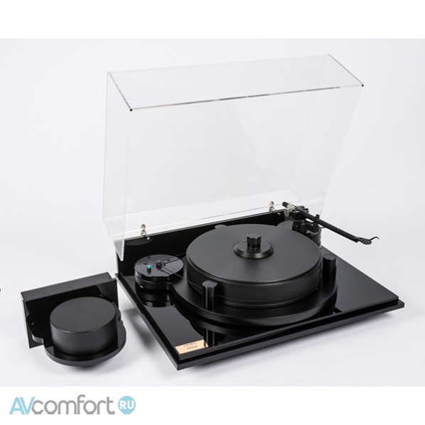 Информация взята с сайта avcomfort.ru Фирменный инвертированный опорный подшипник проигрывателя имеет оригинальную систему принудительной циркуляции масла, благодаря которой достигается высочайшая равномерность вращения дисков. Сам диск проигрывателя изготовлен из акрило-винилового композита и имеет необыкновенно высокую толщину - 60 мм. Резонансные характеристики опорного диска очень близки к характеристикам грампластинки, поэтому диск и установленная на нем пластинка физически ведут себя как единая система, тем более что пластинка в данном проигрывателе в обязательном порядке фиксируется специальным навинчивающимся прижимом, совместимым как со стандартными, так и со 180-граммовыми аудиофильскими пластинками.