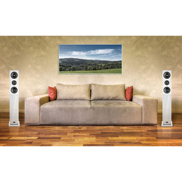 В НЧ-диапазоне два динамика работают в тандеме и создают мощный басовый фундамент. Конструкция гибкого подвеса обеспечивает неискаженное смещение подвижной системы, что дает большой запас мощности и перегрузочной способности даже для воспроизведения фонограмм богатых низкочастотными эффектами фильмов. Фазовыравнивающая насадка неподвижно закреплена на магнитной системе и поэтому не вносит дополнительных искажений при больших смещениях диффузора. Задняя поверхность излучателя работает в сложной структурной системе жесткого диффузородержателя, устраняющего возможность компрессии динамического диапазона, которые могут быть заметны в среднечастотной области. Такая конструкция также обеспечивает эффективный отвод тепла от нагревающихся элементов громкоговорителя. "Звезда" вокруг высокочастотного динамика – это специальный акустический материал, способствующий равномерному распределению звука в пространстве. ВЧ-излучатель с мягким куполом таким образом работает в оптимальных акустических условиях и воспроизводит ВЧ-диапазон даже за пределами человеческого слуха.