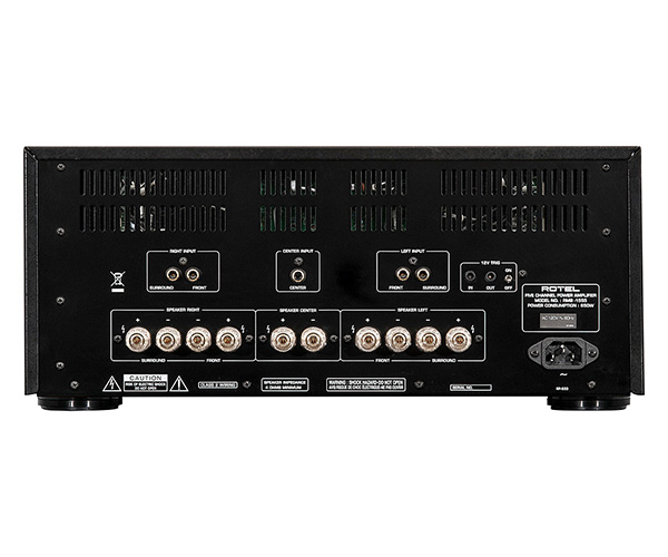 Аппарат оснащен RCA-входами, а также надежными винтовыми клеммами для подключения акустических систем. Управлять включением усилителя можно с помощью триггера, также предусмотрен триггерный выход для подачи команды включения на другие AV-компоненты. Rotel RMB-1555 выполнен в солидном металлическом корпусе большой высоты, что обеспечивает свободную циркуляцию воздуха и отвод тепла от схем.