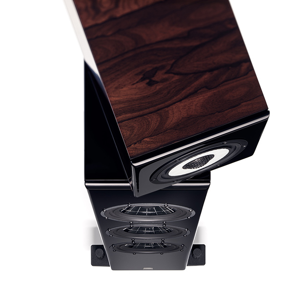 Басы в Vienna Acoustics Liszt передаются тремя запатентованными низкочастотными головками VA Spider- Cone, которые установлены в двух отдельно настраиваемых корпусах. Благодаря этому стало возможно значительно расширить низкочастотный диапазон, с очень плотным и четким воспроизведением баса и отличной атакой без затянутых послезвучий.