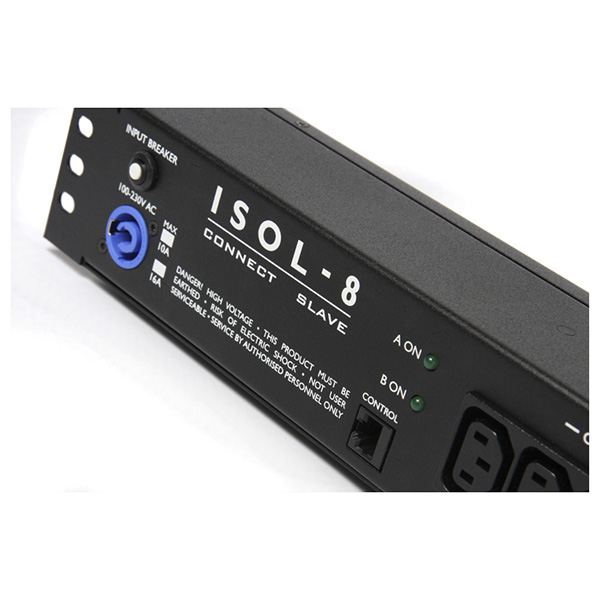 Connect Slave предназначен для монтажа сзади 19-дюймовой стойки, чтобы был обеспечен легкий доступ к розеткам. В блоке имеется две группы розеток с защитными фильтрами, каждая из которых может дистанционно включаться с помощью одного выхода управления ведущего контроллера Connect Controller. Можно выбрать разные наборы розеток для подключения кабелей электропитания в том числе счетверенный блок МЭК или пары британский, европейских (Schuko) или американских розеток. Ввод электропитания через байонетный разъем 20A Neutrik PowerCon, обеспечивающий надежную защиту от случайного отключения.