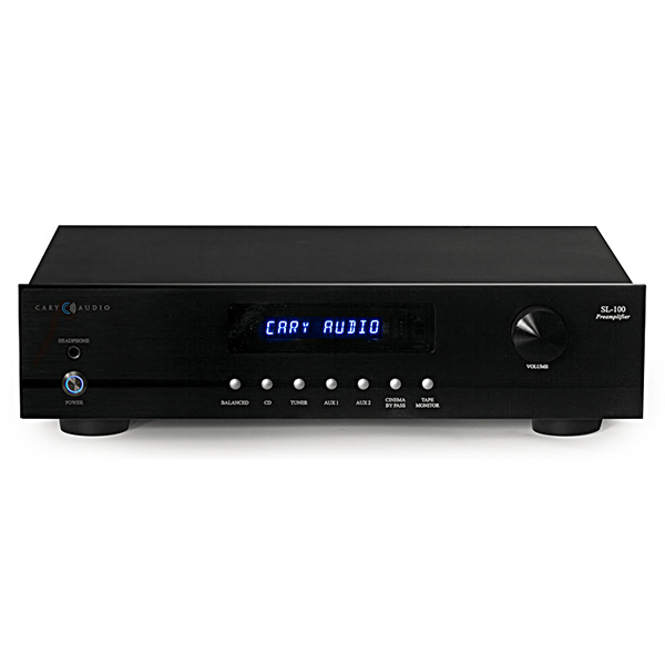 Cary Audio SL-100 собран в надежном 11-килограммовом цельнометаллическом корпусе с передней алюминиевой панелью, слегка выступающей за его пределы. В ее центре находится однострочный дисплей с крупными символами, яркость которого можно регулировать с помощью штатного пульта ДУ. Прямо под дисплеем расположены семь кнопок селектора входов. Ручка регулятора громкости установлена в правой части панели. В левой части находится кнопка включения питания со встроенным LED-диодом и 6,3 мм гнездо для наушников. Универсальный пульт ДУ также позволяет включать/отключать предусилитель, регулировать громкость и баланс, выбирать источники, отключать звук и др. Дисплей отображает выбранный вход, уровень громкости и прочие показатели, связанные с настройками.