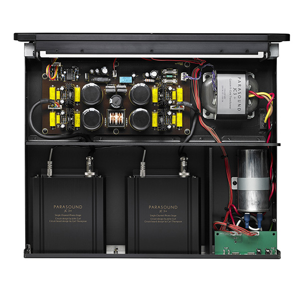 Parasound JC3 имеет переключатель «моно/стерео» на лицевой панели для прослушивания как в стерео, так и в монорежимах (для старых монофонических записей). Корпус фонокорректора разделен внутри толстыми алюминиевыми перегородками, что существенно снижает помехи от электромагнитного поля. Для питания аппарата используется трансформатор R-типа, имеющий гораздо меньшее излучение электромагнитного поля по сравнению с традиционным тороидальным трансформатором. Переключатель «полярности питания» позволяет уменьшить уровень шума, вызываемого электрической сетью, путем смены полярности - фаза/ноль. Но в подавляющем большинстве случаев фирма рекомендует оставлять переключатель в положении Normal. Фонокорректор допускает подключение по 12 В триггерному входу (два режима работы: авто/ручной).