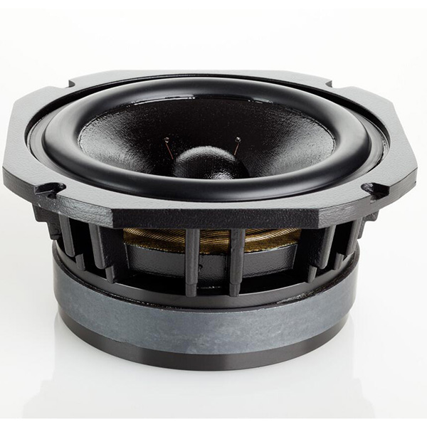 Есть несколько важных разработок, которые повлияли на воспроизведение вокала в музыке и голоса в кино: мягкий купол, интегрированный в басовый драйвер, включает в себя 75 мм длинноходную катушку с центрующими кольцами. Это дает высокую мощность без искажений, контролируемый ход катушки (соосность) и хороший теплообмен. Помимо того, что центрирующее кольцо ограничивает длину хода звуковой катушки, что в свою очередь, предотвращает ее механическое повреждение, оно также является важнейшей составной частью системы демпфирования. Особая магнитная конструкция не влияет на линейность из-за гистерезиса стали. Диафрагма пропитана вязкой средой, чтобы уменьшить нежелательные резонансы и обеспечить плавный отклик с минимальным окрасом. Точность звучания купола достигается за счет монтажа его в профиле басового драйвера. Это дает хорошее соотношение прямого и отраженного звука.