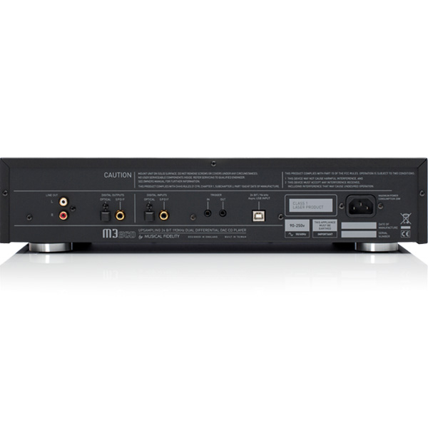 Musical Fidelity M3SCD снабжен сетевым фильтром, который защищает от нежелательных помех, распространяющихся по электрическим кабелям, и позволяет всем пяти независимым блокам питания функционировать корректно, вне зависимости от проблем электросети. Такого фильтра нет ни в одном другом CD-проигрывателе. Musical Fidelity M3SCD демонстрирует высокое качество сборки и звучания.