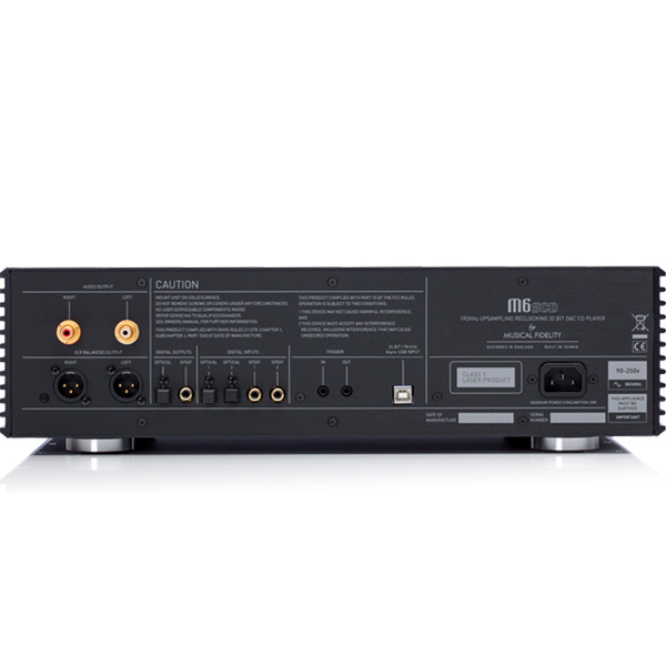 К Musical Fidelity M6SCD, можно подключ компьютер через высокоскоростной порт USB (2.0). Это позволяет организовать великолепную мультимедийную систему и проигрывать медиа-файлы различных форматов. Высокочастотная передискретизация обеспечивает намного лучшее качество звучания, чем компьютерные звуковые платы. Проигрыватель Musical Fidelity M6SCD полностью совместим с любой аппаратурой серии M6 и M6S. Системы, построенные на базе оборудования M6, обладают чистейшим звучанием и отличным соотношением цены и качества.