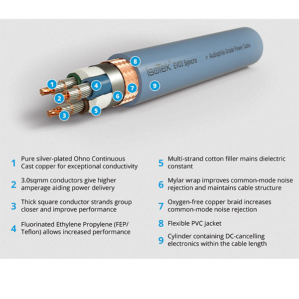 IsoTek Syncro — это высококачественный силовой кабель, разработанный для значительного снижения/заглушения гула трансформатора, когда трансформаторы в оборудовании, как правило, усилители мощности, механически вибрируют. Syncro также можно использовать в качестве устройства «предварительного фильтра», которое можно использовать с любой системой кондиционирования питания.
