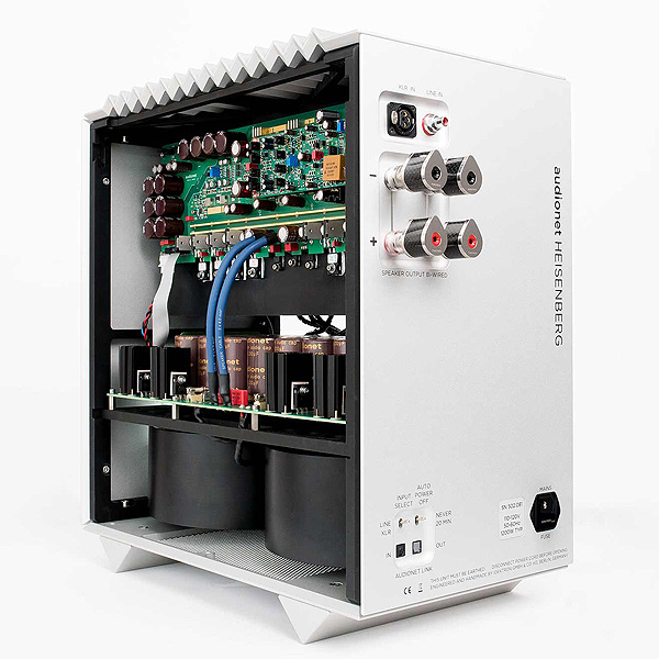 Технология Audionet ULA (Ultra Linear Amplifier) для максимальной линейности в режиме реального времени. Родиевые Furutech терминалы. Блок питания, без конденсаторов или катушек, уменьшающих громкость, кратчайшие пути прохождения сигнала. Передача сигналов без потерь через массивные позолоченные медные перемычки на акустические терминалы. Отсутствие релейных выходных размыкателей. Два раздельных источника питания для управления устройством и контроля за фазой электросети. Четыре источника питания для положительных и отрицательных токов мощности, раздельные для входной схемы и схемы выходного усилителя. Два инкапсулированных и развязанных тороидальных трансформатора 50 ВА для входной схемы. Два инкапсулированных и развязанных тороидальных трансформатора мощностью 1200 ВА для силовой схемы выходного усилителя. Оптимизированные по мощности силовые конденсаторы общей емкостью 200 000 мкФ.