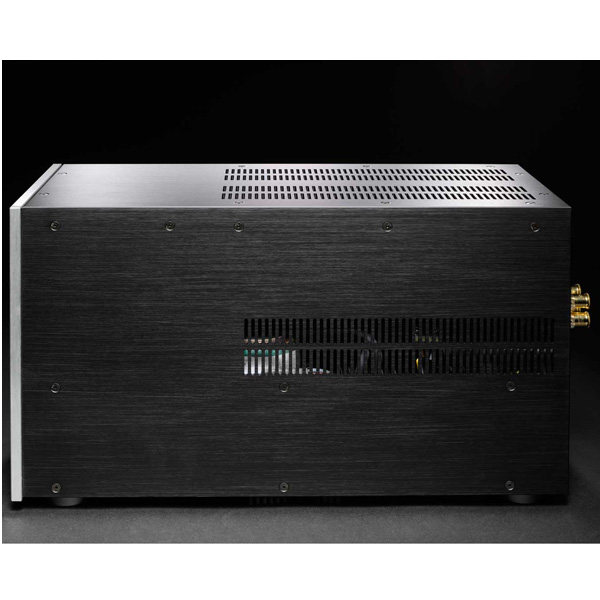 Выходной каскад оснащен восемью отобранными силовыми МОП-транзисторами с активным контролем тока смещения, составляющим 0,6 А. Напряжение питания стабилизируется так быстро, благодаря оптимизированным дискретным регуляторам MOSFET. Для достижения оптимальной производительности отрицательное и положительное рабочее напряжение полностью отключается. Два отдельных тороидальных трансформатора мощностью 1000 ВА питают положительные и отрицательные полуволны. В качестве аккумулятора служат четыре специальных, быстрых и импульсно-устойчивых сильноточных конденсатора с общей пропускной способностью 156 000 мкФ.