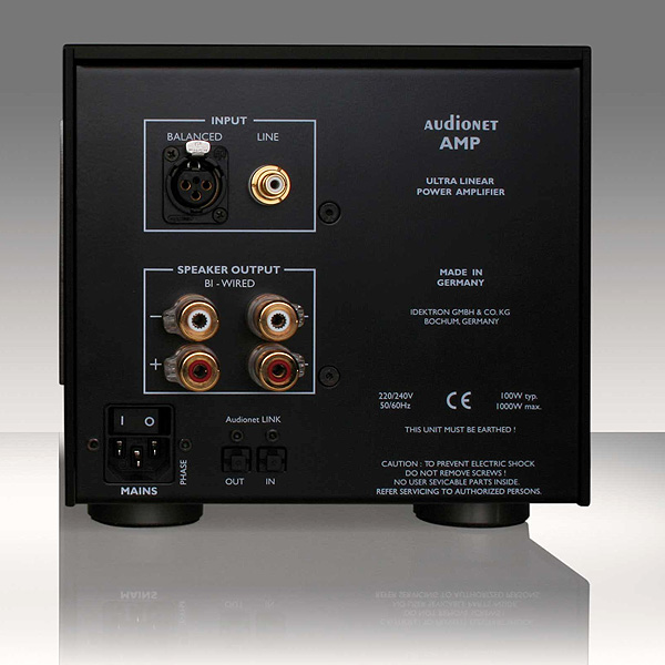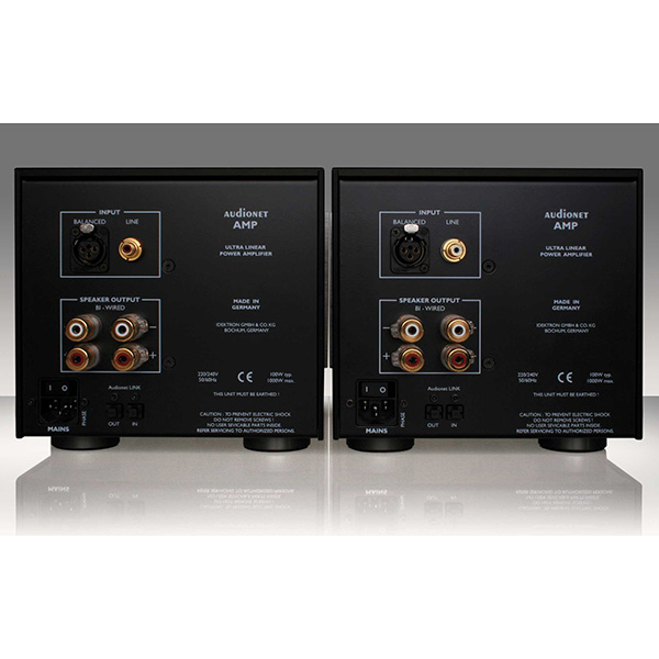 AMP оснащены входами RCA и XLR, которые электронным образом переключаются через позолоченные прецизионные реле. Входной каскад сконфигурирован как двух-дифференциальный усилитель с малошумящим монолитным двойным полевым транзистором, что делает оконечные усилители электрически независимыми от входного сигнала, избегая вредного взаимодействия с источником питания.