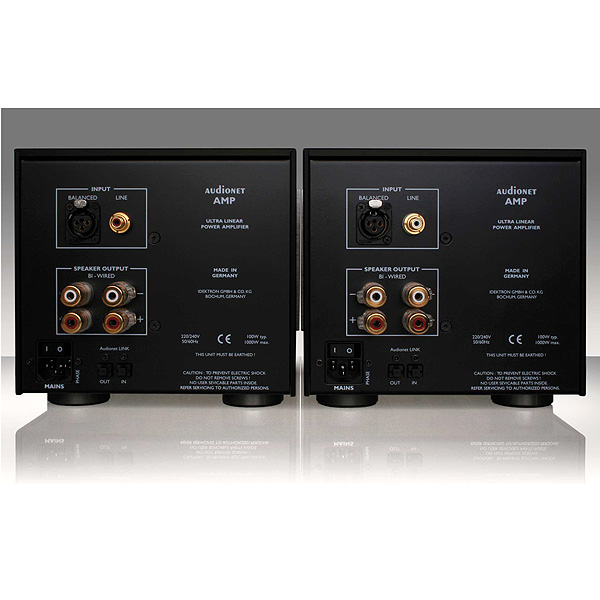 AMP оснащены входами RCA и XLR, которые электронным образом переключаются через позолоченные прецизионные реле. Входной каскад сконфигурирован как двух-дифференциальный усилитель с малошумящим монолитным двойным полевым транзистором, что делает оконечные усилители электрически независимыми от входного сигнала, избегая вредного взаимодействия с источником питания.