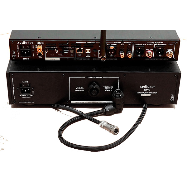 Расположение трансформаторов с тороидальным сердечником минимизирует влияние магнитных возмущений. Напряжение питания управляется двумя кольцевыми тороидальными трансформаторами 200 ВА, каждый из которых отвечает за одну полуволну. Емкость быстрых и импульсно-стабильных конденсаторов с высоким током составляет 576 000 мкФ. Используются только Шоттки-диоды с чрезвычайно быстрым временем переключения. Стабильный с низким уровнем шума источник, служит в качестве опорного напряжения. EPX - это внешний прецизионный источник питания и кондиционер для электронного оборудования Audionet с 5 или 7-полюсным разъемом.