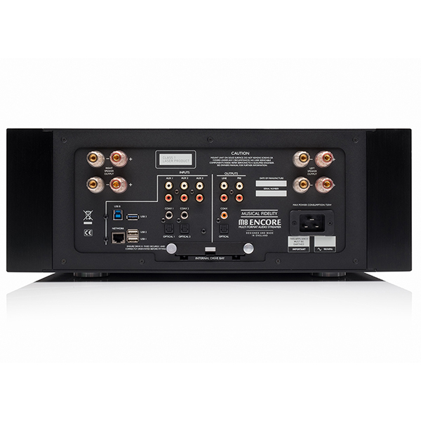 Информация взята с сайта avcomfort.ru M8 Encore имеет широкий набор интерфейсов для подключения внешних звуковых устройств и USB-гаджетов, а также LAN порт. USB порт с возможностью зарядки с повышенным током питания. Musical Fidelity M8 Encore 500 способен стать единственным компонентом High End системы, достаточно лишь подключить акустические системы.