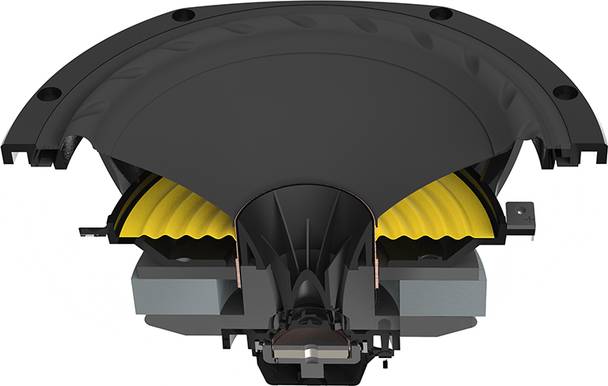 Линейка акустики F500E пополнилась компактными напольными системами F55E. Несмотря уникально малые для фирмы габариты, они построены с использованием основных проприетарных решений. Конструкция — 2,5-полосная. Драйвер Isoflare — 5”, басовый динамик такого же калибра. Порт фазоинвертора обращен вниз и имеет профиль Basstrax Tractrix, который обеспечивает на низких частотах рассеивание на 360 градусов.
