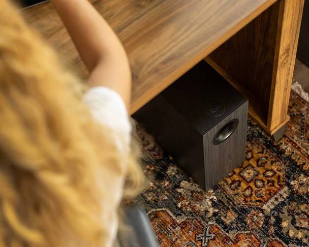 Система имеет конфигурацию 2.1, то есть в комплект, помимо сателлитов, входит сабвуфер. В сателлитах установлены майларовые твитеры 1″ в фирменном рупоре MicroTractrix и СЧ-динамики 3″. В сабвуфере — обращенный вбок басовик 6,5”, в нем же расположены все усилители системы.