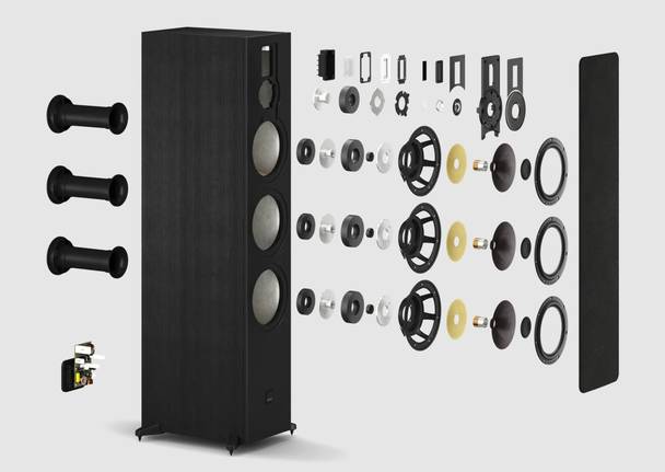 Корпуса вытачиваются из МДФ на станках с ЧПУ и укрепляются изнутри системой стяжек и распорок. Имеются отдельные объемы для басовых драйверов. Грили — на магнитах. Четыре варианта оформления: черный пепел, орех, натуральный дуб и белый.