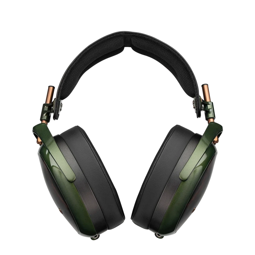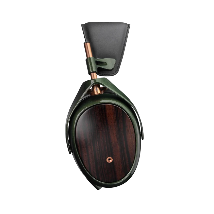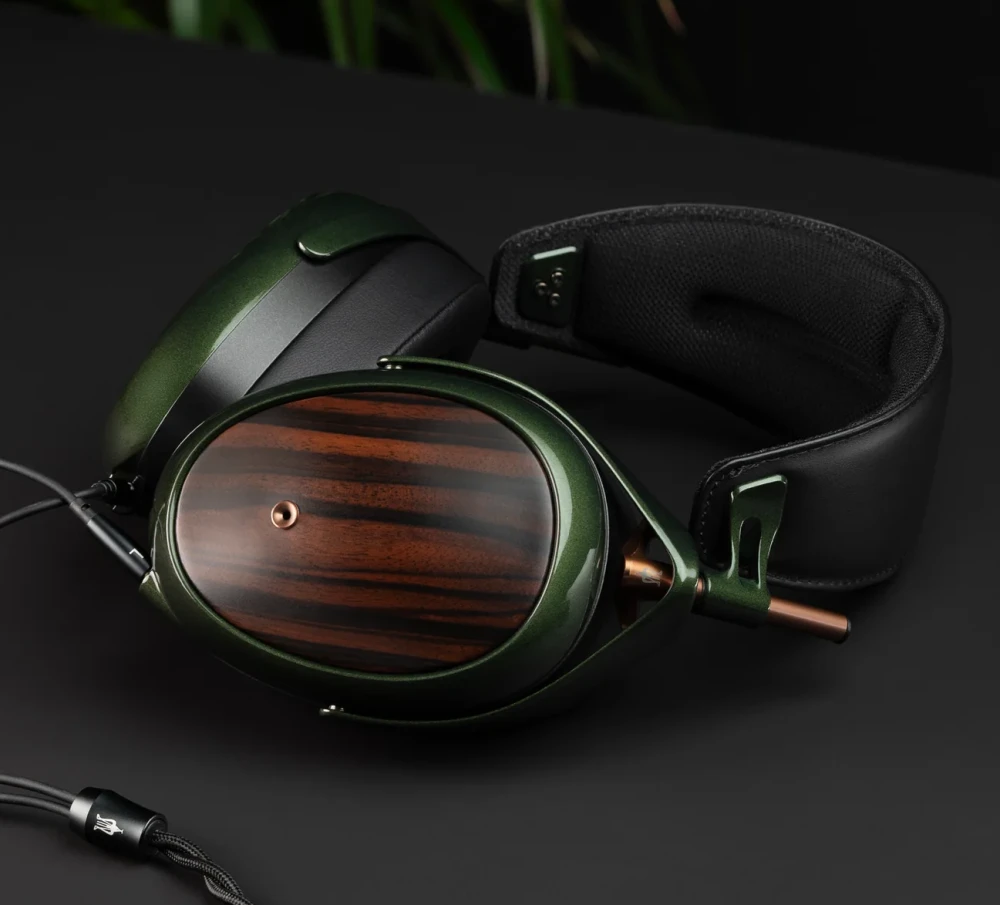 Наушники получили большие овальные чашки с задней частью из эбенового дерева и шасси из магниевого сплава, покрытого довольно необычной краской зеленого оттенка. Оголовье дополнено широкой мягкой подушечкой для головы и системой регулировки высоты с помощью медных стержней. Модель отличается массивными охватывающими амбушюрами, которые крепятся к чашкам с помощью магнитов.