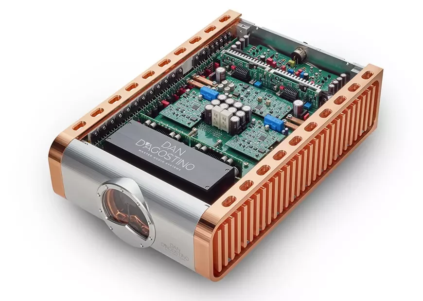Американский аудиопроизводитель Dan D'Agostino Master Audio Systems представил моноблочный усилитель мощности Dan D'Agostino Momentum Z, новую флагманскую модель, приуроченную к пятнадцатилетию High End-бренда из штата Аризона. Новинка способна развивать 500 Вт при работе на нагрузку номинальным сопротивлением 8 Ом и работает в полностью аналоговом режиме – цифровые системы управления исключены из сигнального тракта. Фрезерованные на станках с ЧПУ медные боковые панели не только потрясающе выглядят, но и способствуют эффективному отводу тепла и высокой термической стабильности усилителя.