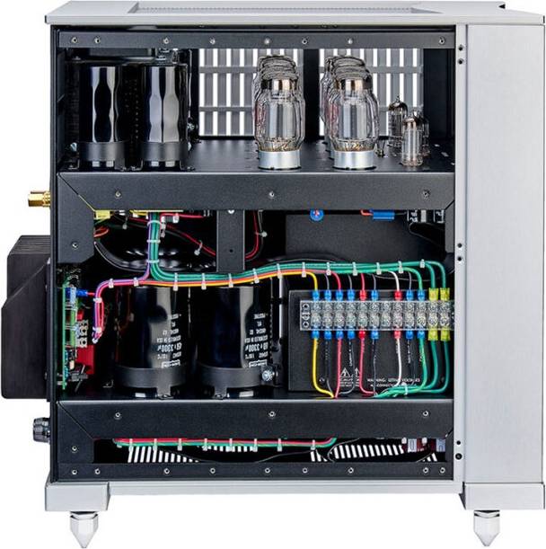 Анодное и сеточное питающие напряжения стабилизированы. Выходные трансформаторы — широкополосные с многосекционной плотной намоткой. Схема — без ООС. Имеется возможность настраивать фактор демпфирования для наилучшего согласования с акустикой. Режимы ламп устанавливаются автоматически микропроцессором. Имеется схема мониторинга и защиты от всех нештатных ситуаций.