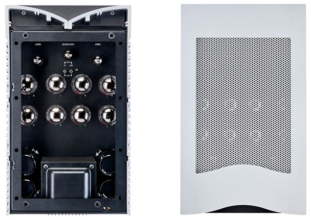 Ламповый моноблок Vacuum Tube Logic Lohengrin развивает на выходе 400 Вт в тетродном режиме или 20 Вт в триодном. Минимальное потребление энергии — 350 Вт, максимальное — 900 Вт (при полной нагрузке). Габариты 29 x 49 x 50 см, масса 77 кг.