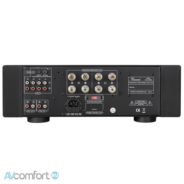 Информация взята с сайта avcomfort.ru Базовая конструкция Vincent SV-237MK, по сравнению с предшественником, не изменилась: трудно сделать лучше то, что и так уже прекрасно в своей ценовой категории. В секции предусилителя две лампы типа 6N1P российского производства отлично делают свою работу, добавляя теплоты и естественности в звуке. Доставшиеся от предшественника реле и потенциометры обеспечивают отличное соотношение сигнал/шум.