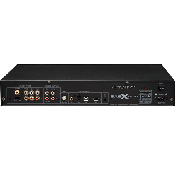 Информация взята с сайта avcomfort.ru Emotiva BasX PT-100 предлагает эксплуатационные качества, которые вы, возможно, ожидаете найти в дорогостоящих компонентах, стоимость которых во много раз выше его скромной цены. В наши дни в отличие от многих других доступных аудиокомпонентов, PT-100 обеспечивает превосходный звук и качество сборки, которое вы ожидаете от настоящего высококачественного аудиофильского компонента. Он имеет довольно низкий уровень шумов и искажений, и широкую полосу частот, что позволяет вам максимально использовать источники высокого разрешения (HD). Emotiva BasX PT-100 построен по современным аудио технологиям, в массивном стальном корпусе, с фрезерованной алюминиевой лицевой панелью и высококачественными деталями, и конструкцией. Мы уверены, что вы будете наслаждаться BasX PT-100 в течение длительного времени - и мы поддерживаем это фирменной гарантией.