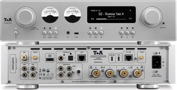 Новый стриминговый усилитель Symphonia построен на кастомизированных самой фирмой модулях Purifi Eigentakt. Работает он в классе D и развивает мощность 2 х 125 Вт на 8 Омах или 2 х 250 Вт на 4 Омах. Питание — от фирменного источника Sine с чистым синусом на выходе.