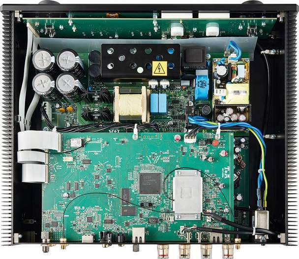 Компания не раскрывает данные об элементной базе ЦАПа, известно только, что потоки PCM (до 32 бит/768 кГц) и DSD (до DSD512) обрабатываются раздельно. Сетевая подсистема — проприетарная ASA G3. Выход в сеть — через Ethernet или Wi-Fi, поддерживаются все популярные стриминговые сервисы, технологии Spotify Connect, Tidal Connect, Apple AirPlay 2. Сертификат Roon Ready — в процессе получения. Bluetooth — двунаправленный с кодеком aptX HD. Имеется встроенный MM/MC-фонокорректор, порт HDMI ARC для подключения к телевизору, два выхода на сабвуфер с фильтрацией. Габариты 100 x 380 x 340 мм, масса 6,2 кг.