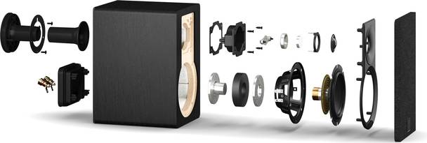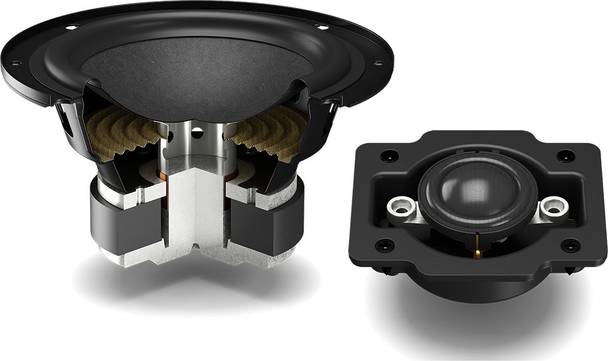 Мониторы двухполосные, с СЧ/НЧ-динамиком 4,.5″ с диффузором из бумаги с примесью древесных волокон, ферритовой магнитной системой и резиновым подвесом. Твитер — мягкий калибра 26 мм с особым фланцем, который улучшает его согласование с СЧ/НЧ-драйвером.